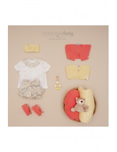 Conjunto Pangasa compuesto por cubre-pañal de punto con tirantes y blusa a tono