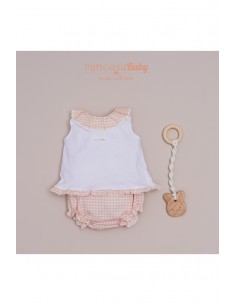 Conjunto Pangasa con blusa de punto con motivos en cuadros salmón a juego con el cubre-pañal