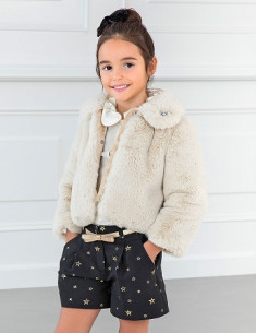 Blusa Kauli de plumeti blanco con volante en el cuello y detalles de bolitas en canesú y mangas