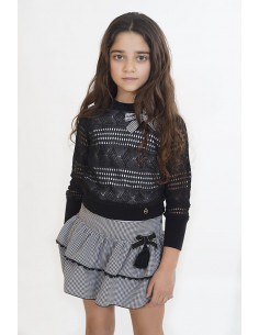 Conjunto short y blusa colección Tejo de Noma Fernandez en tono negro y blanco a cuadros