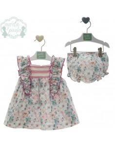 Vestido bebé Marta y Paula con braguita en tono azul rojo