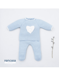 Primera puesta Pangasa en punto celeste con cuello estampado a tono