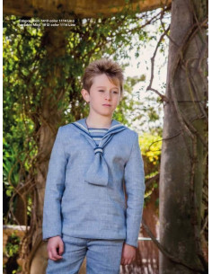 Marinero Barcarola en otomán beige y motivos en marino y vainicas