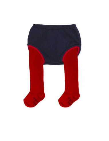 Jersey Tutto Piccolo de color beige con motivos azules y rojos, puños y cuello en color azul marino y botones en la parte de adelantera de adorno