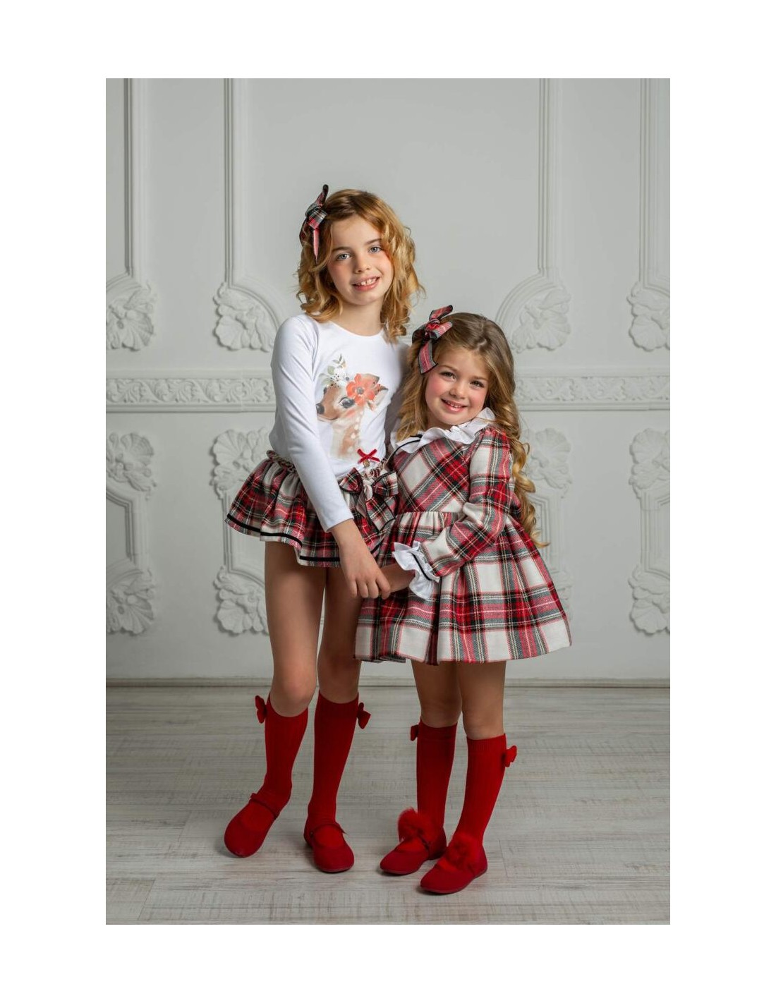 Conjunto Alhuka compuesto por braga de cuadros rojos y camiseta a juego