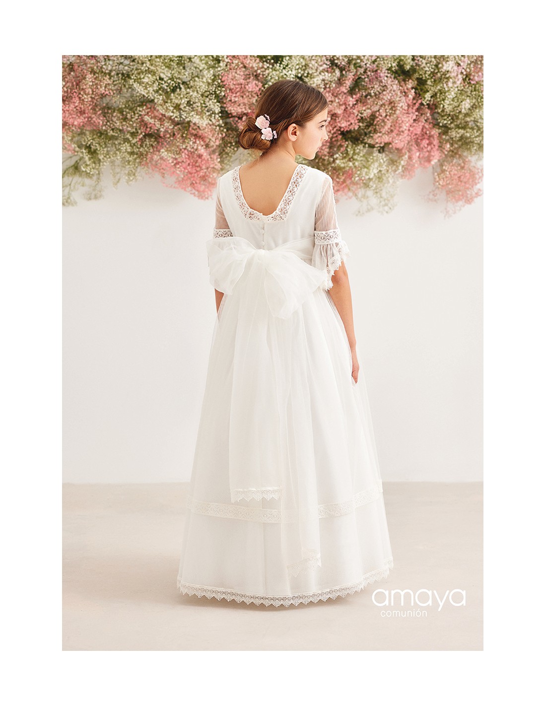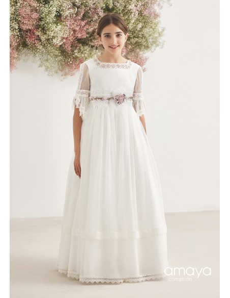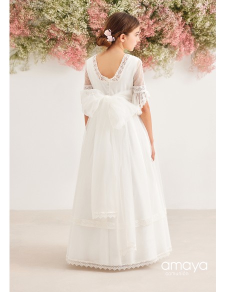 Traje de comunión de Amaya en tul con tocado en la cintura