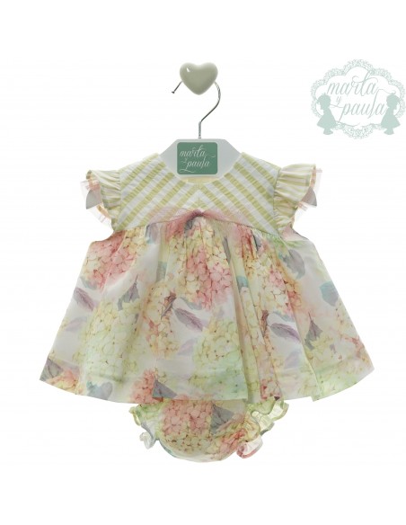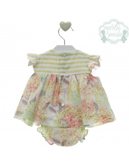 Jesustio Marta y Paula con canesú a rayas y falda estampada a tono
