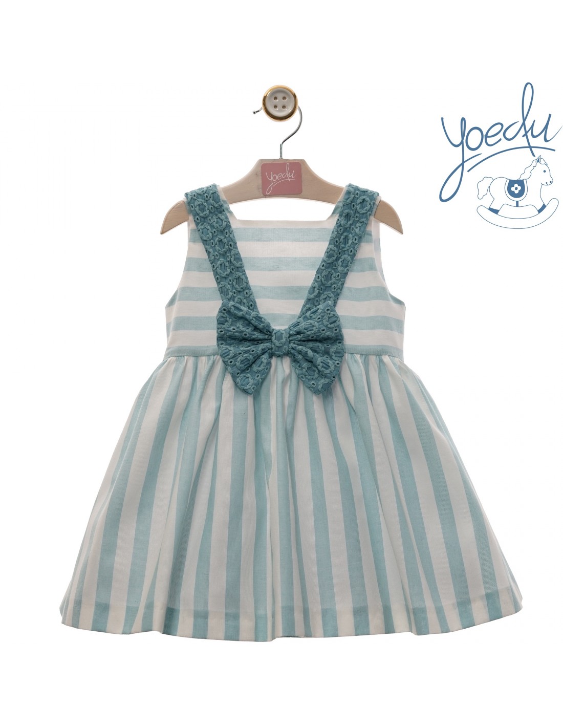 Vestido Yoedu a rayas verdes con lazada a tono
