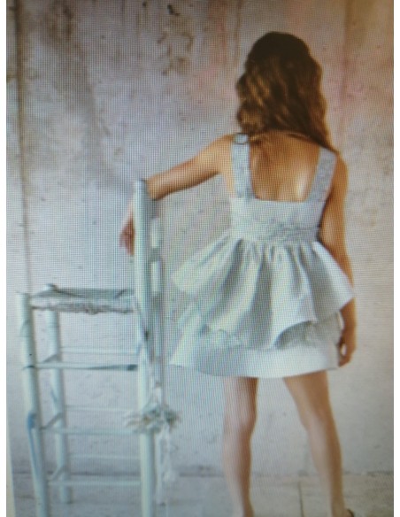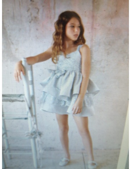 Vestido Hortensia Maeso en lino verde con tul bordado em el cuerpo y la lazada