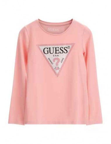 Camisa Guess con logo en brillantes en tono rosa