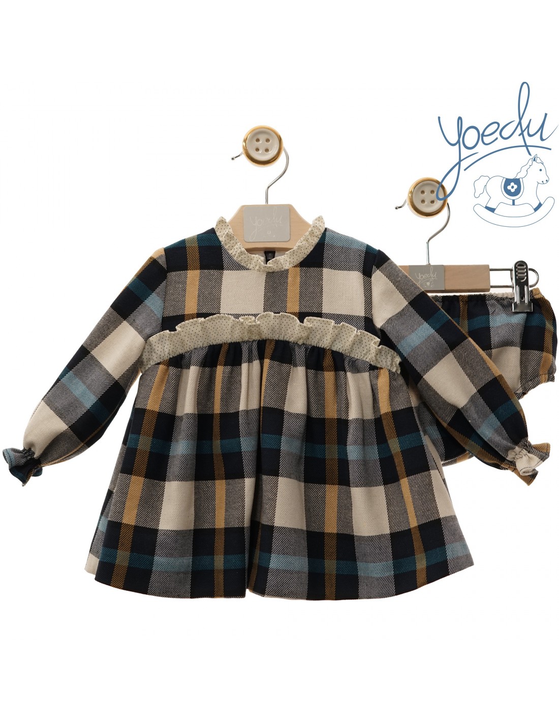 Vestido Yoedu bebé con braguita en tono azul a cuadros