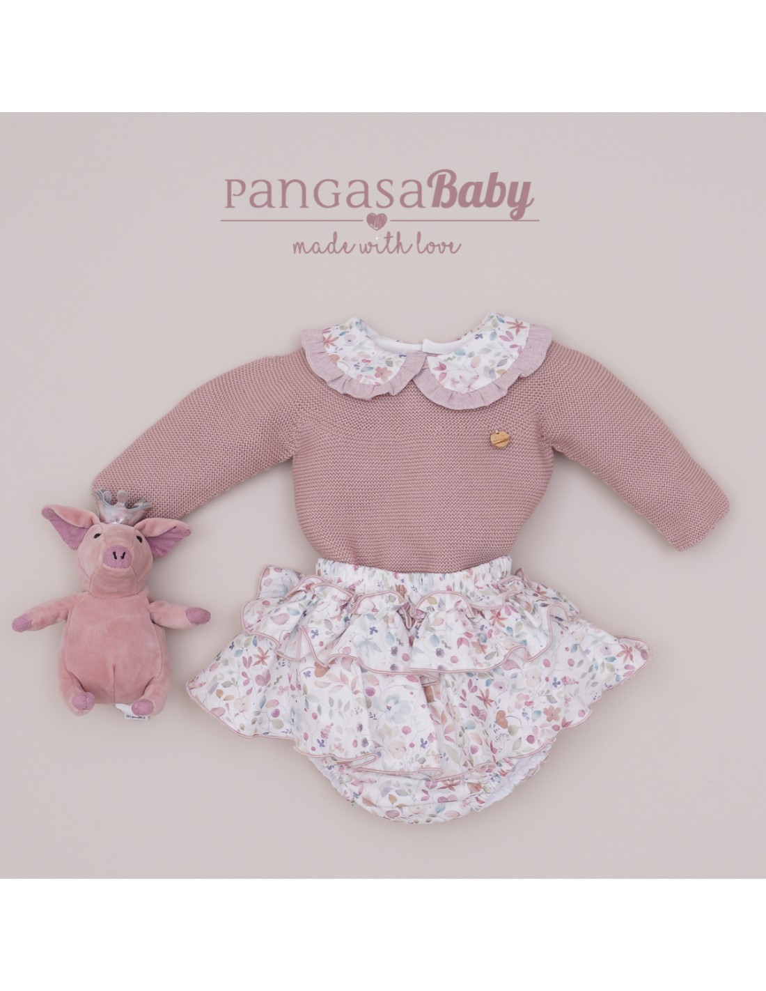 Conjunto Pangasa en punto y tela color rosado