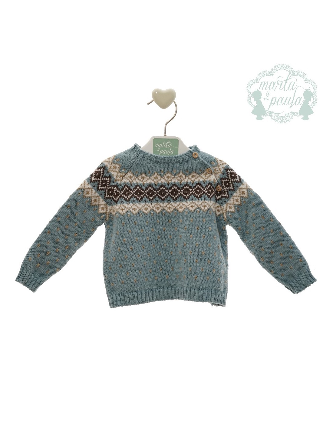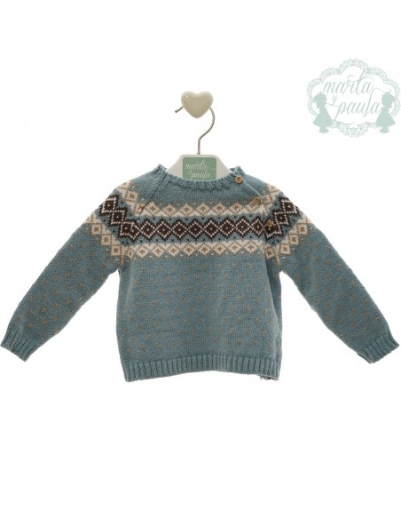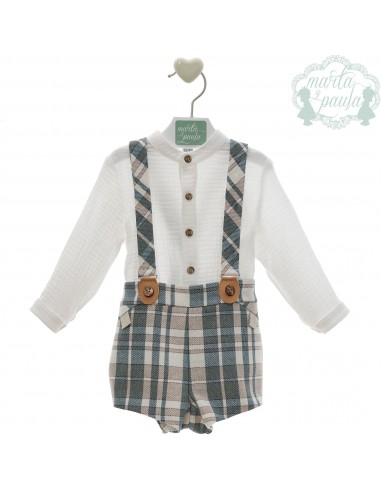 Conjunto Marta y Paula compuesto por bermuda a cuadros con tirantes, sueter con cenefas a tono y camisa