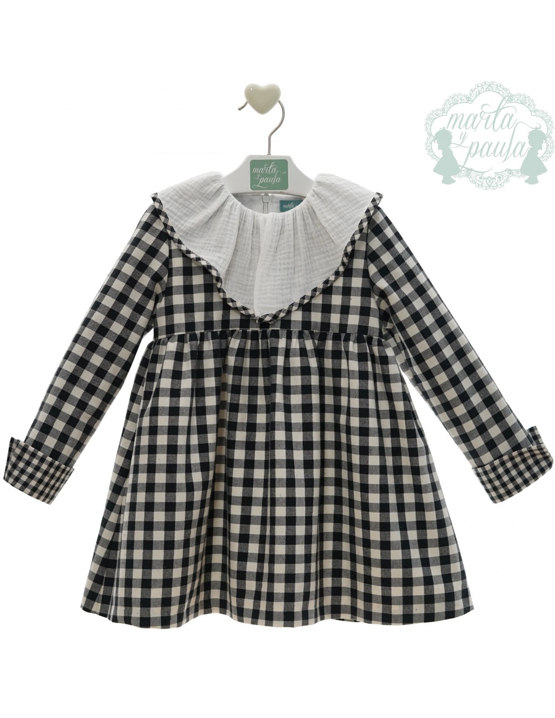 Vestido Marta y Paula a cuadros blancos y negro con cuello blanco