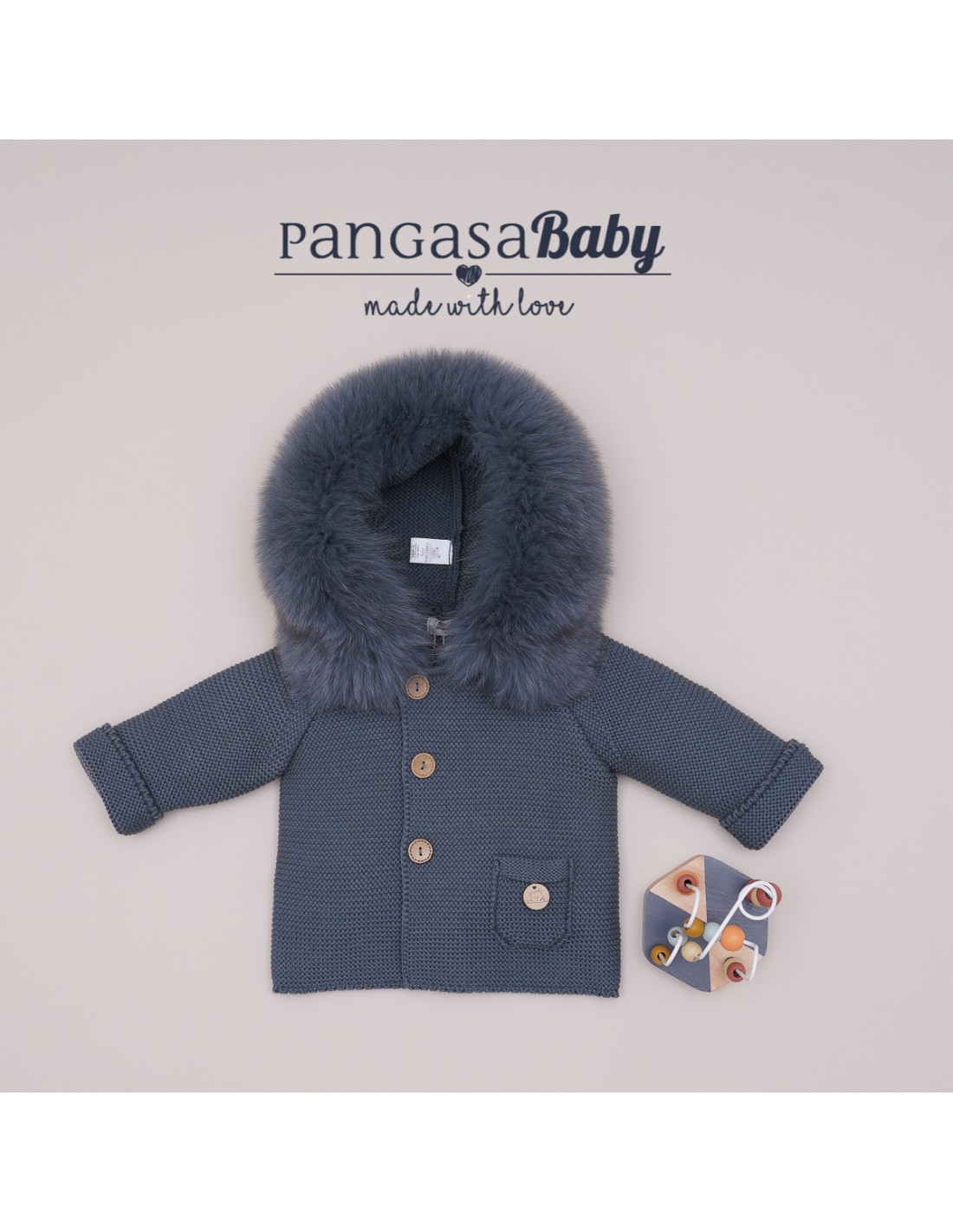 Trenka Pangasa en color azul petróleo incluido cuello de pelo sintético