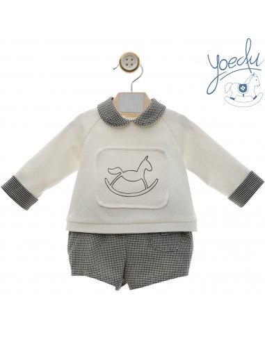 Conjunto Yoedu compuesto por sudadera de punto en blanco roto y bombacho a cuadros negros y beige