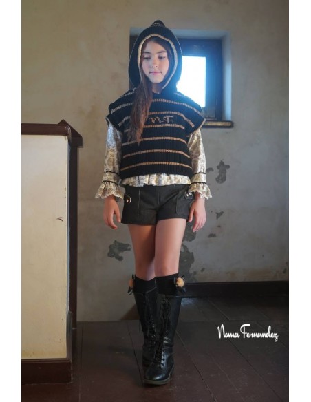 Conjunto Noma Fernandez colección Milán compuesto por bombacho negro con blusa estampada en tonos tierra