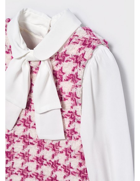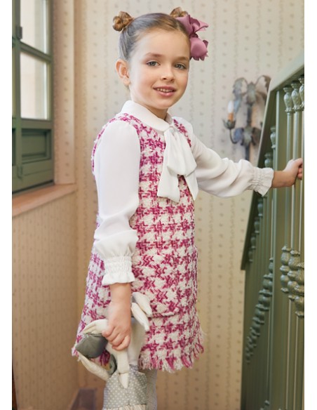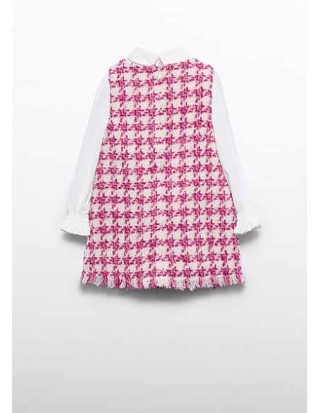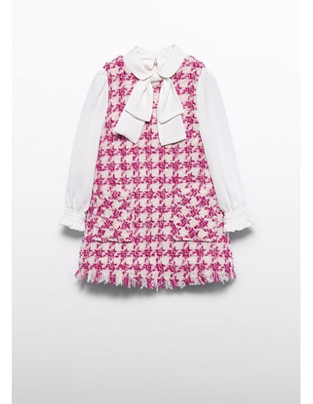 Pichi Abel y Lula en cuadros fucsia con blusa blanca debajo