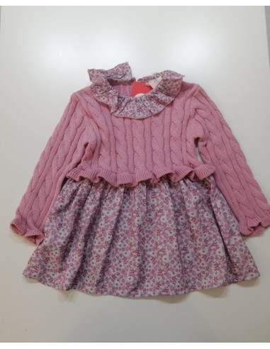 Vestido boboli con cuerpo tricot y falda a flores a tono