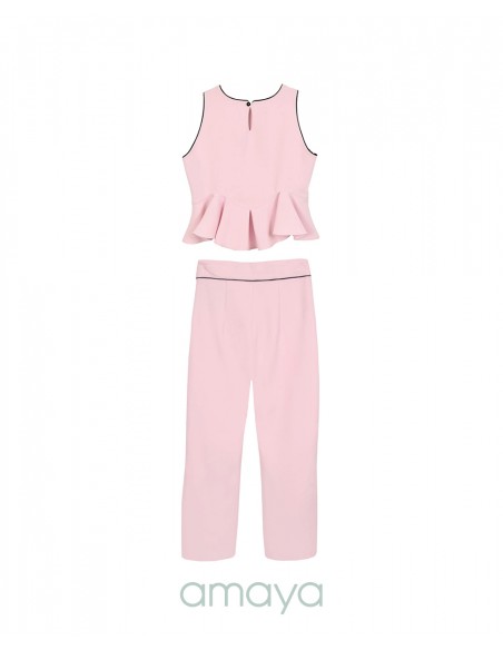 Conjunto Amaya compuesto por top acabado con volante y pantalón ajustado