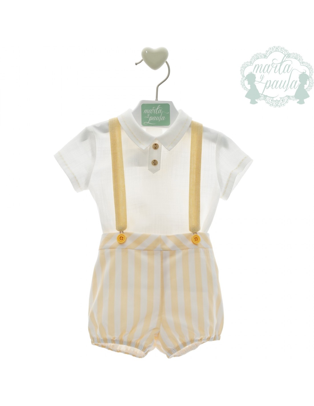 Conjunto Marta y Paula niño con pantalón corto, camisa y tirantes a juego