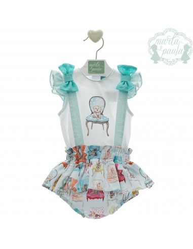 Conjunto Marta y paula compuesto por braga-falda con tirantes y camiseta de algodón