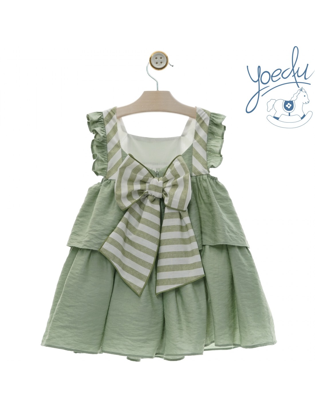 Vestido Yoedu a volantes verdes coordinado con rayas a tono