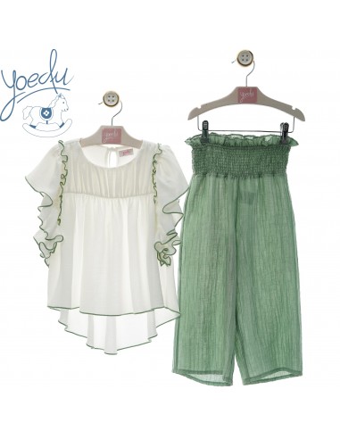 Conjunto Yoedu compuesto por pantalón ancho verde y blusa con motivos a tono