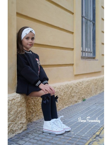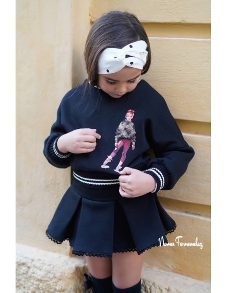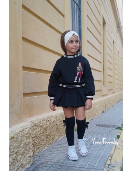 Conjunto de Noma Fernandez negro compuesto por falda a tablas y sudadera