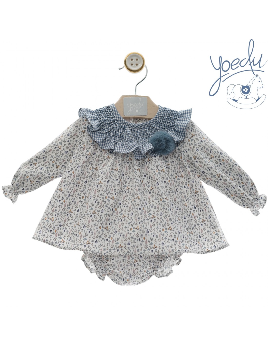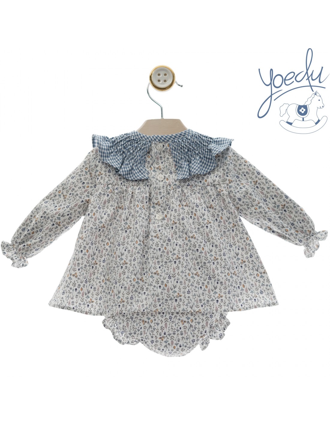 Jesusito Yoedu estampado con flores en tonos azules y cuello a cuadros a tono