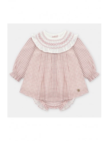 Conjunto Martin Aranda compuesto por jesusito a cuadros rosa con cubre-pañal a juego