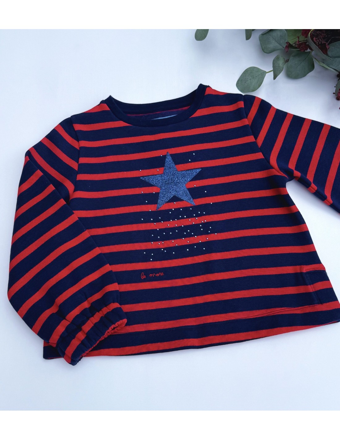 Sudadera Be More a rallas rojas y azul marino con estampado de estrella