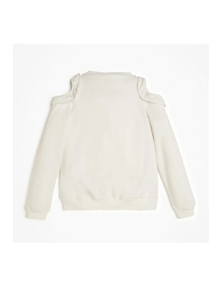 Sudadera de algodón blanco de manga larga para niña. Escote redondo, aperturas en las mangas y calce regular. Logo frontal con relieve