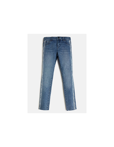 Vaqueros de tejido mixto de algodón para niña. Con cierre de cremallera y botones. Clásico 5 bolsillos. Tiro medio, pierna skinny.