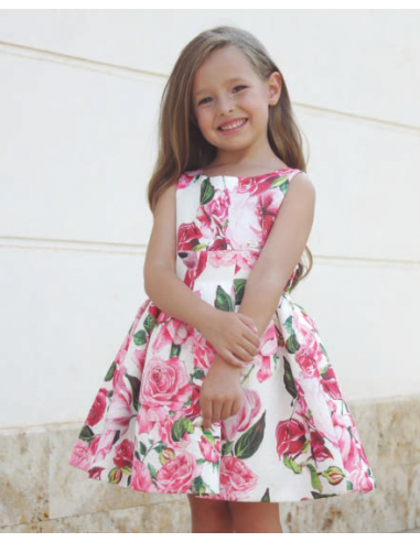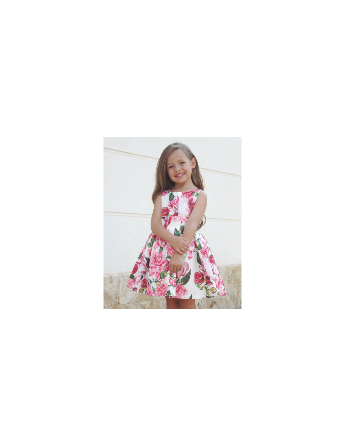 VESTIDO AMAYA,CON MOTIVOS FLORALES SOBRE FONDO NATA