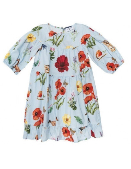 VESTIDO CAMISERO MONNALISA EN AZUL CIELO CON ESTAMPADO DE FLORES
