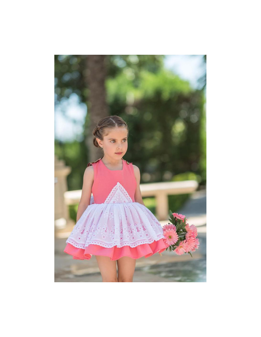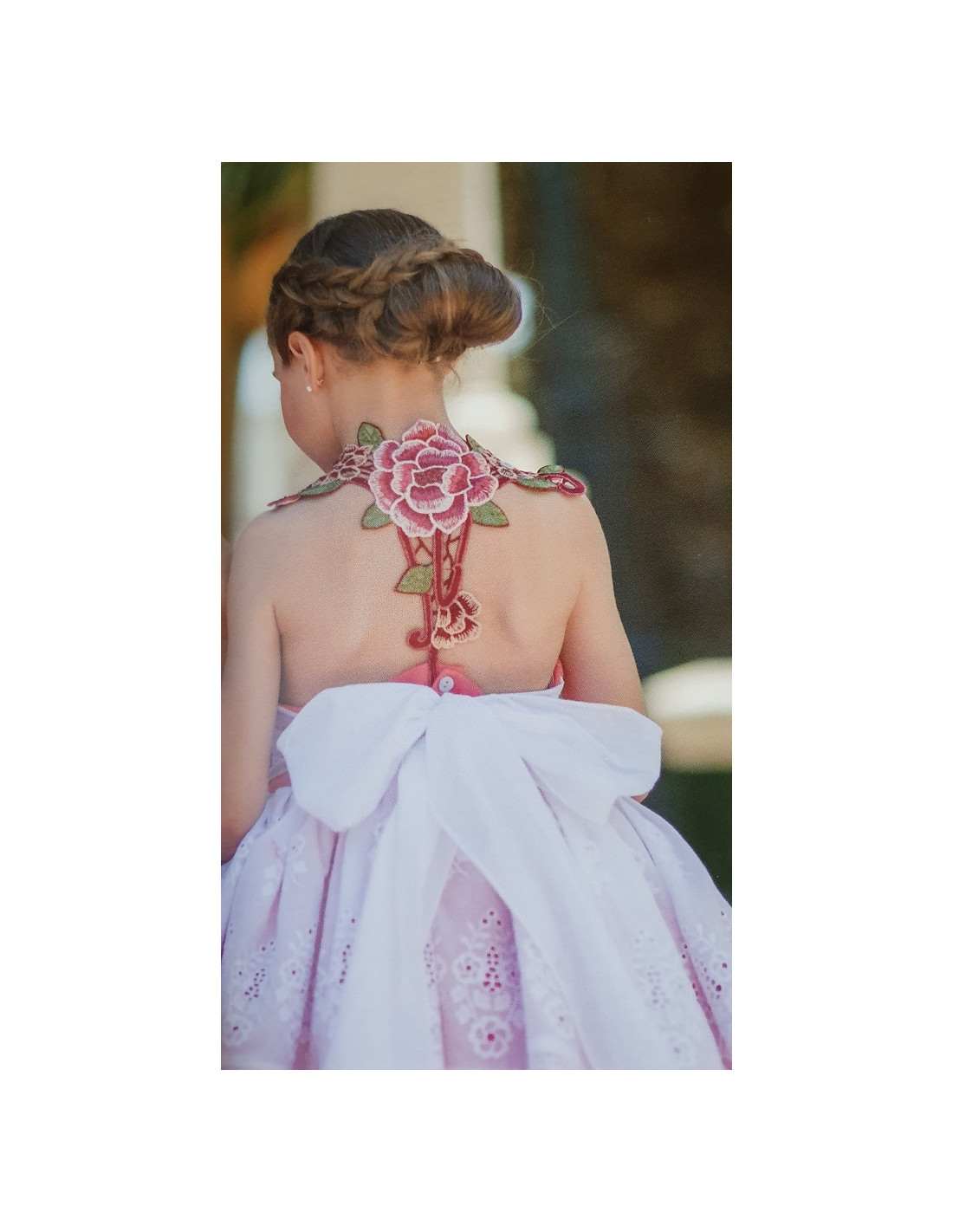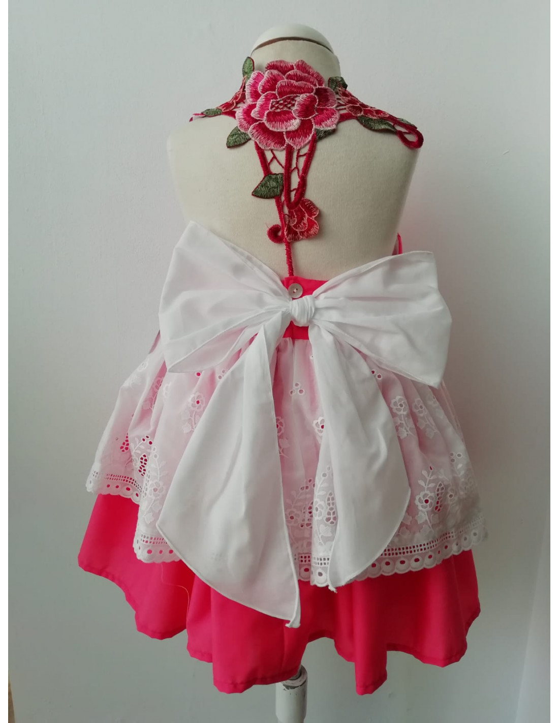 Hermoso vestido de vuelo color coral y maravilloso detalle de rosas en la espalda.